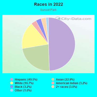 Census data the population of Sunset Park is overwhelmingly Hispanic and Asian. 8 rows Key findings. The neighborhood would have neither numbers nor spirit without its immigrant populations. Relative Race and Ethnicity 2.